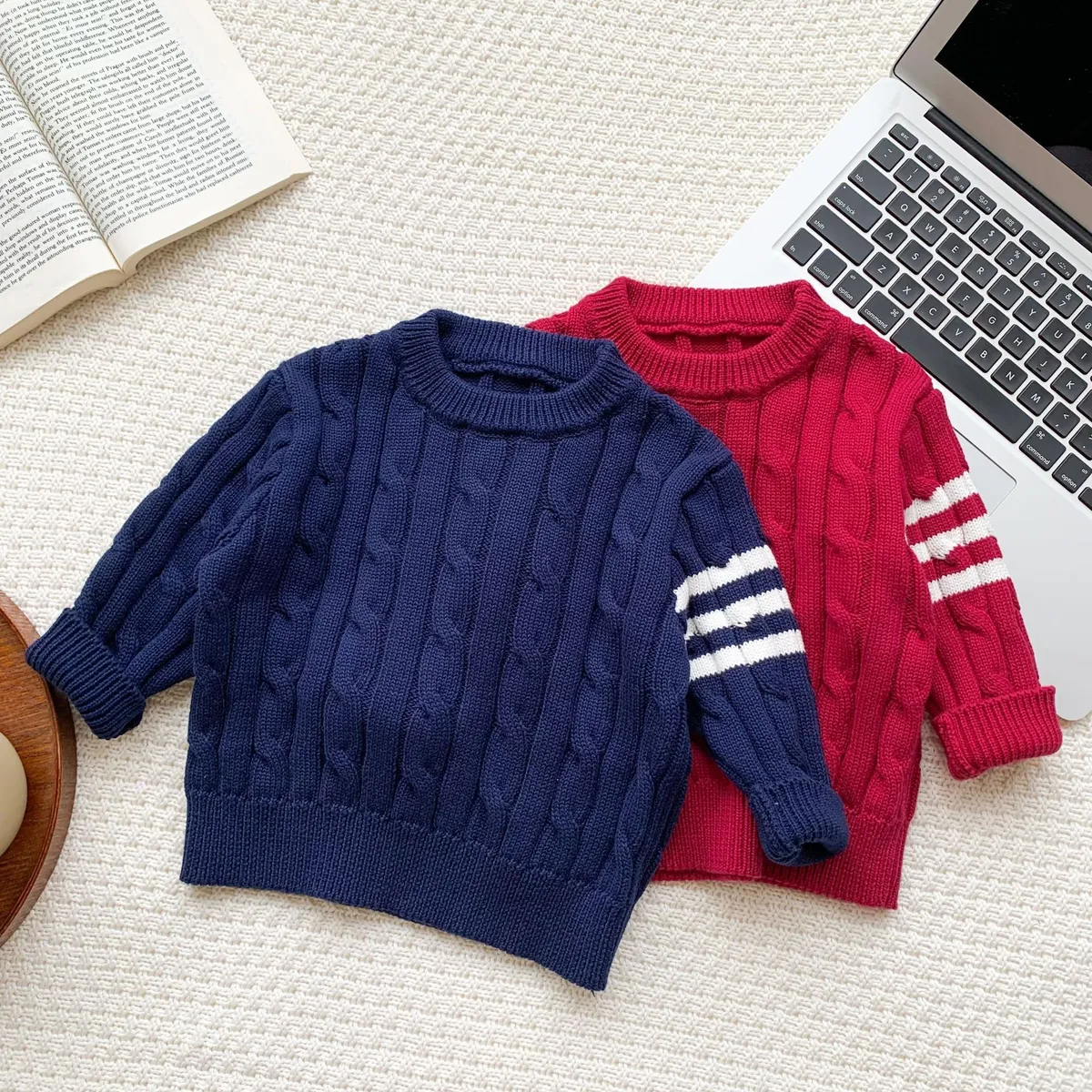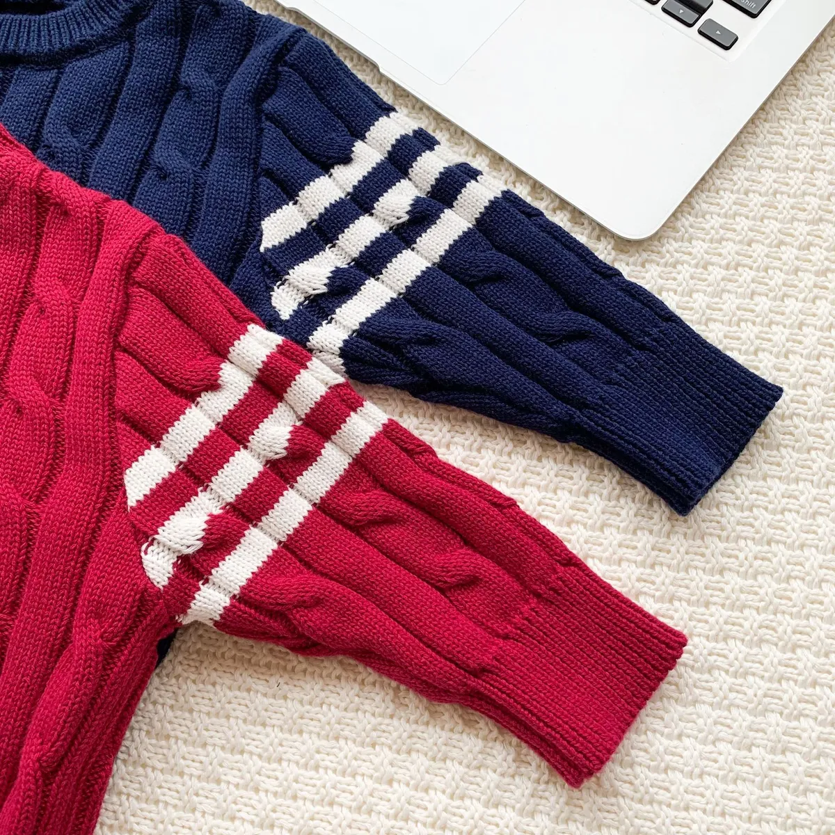 針織手袖條紋上衣