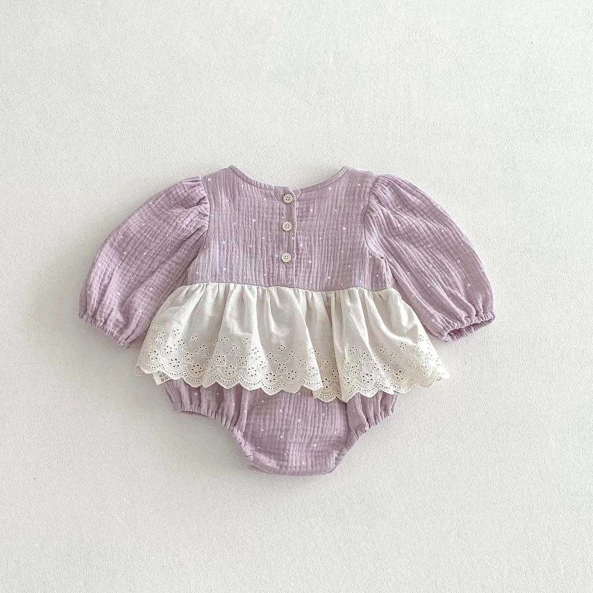 紫色純棉蕾絲包屁
