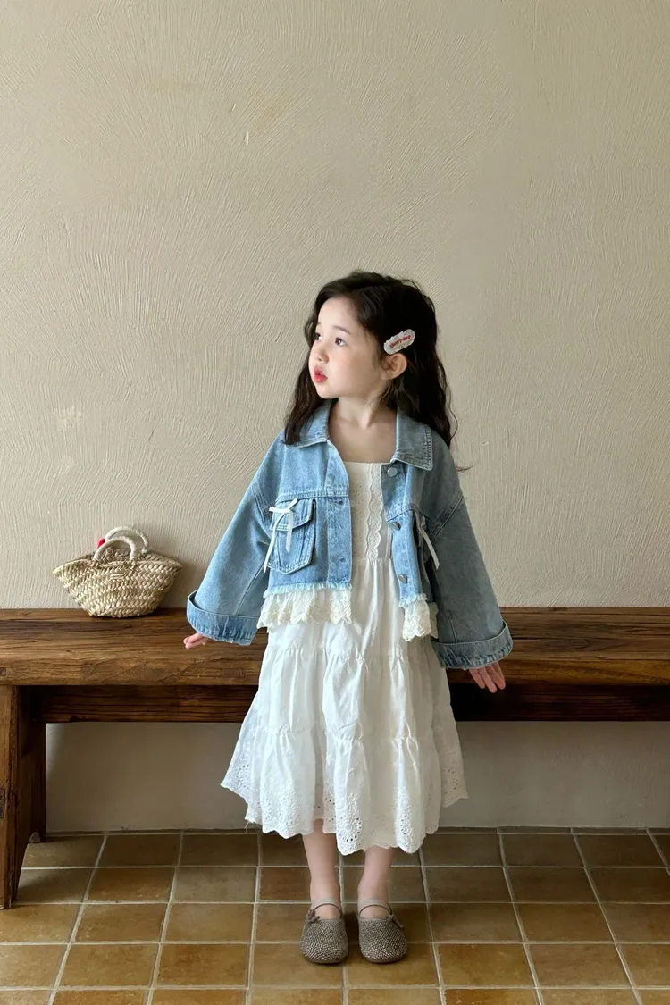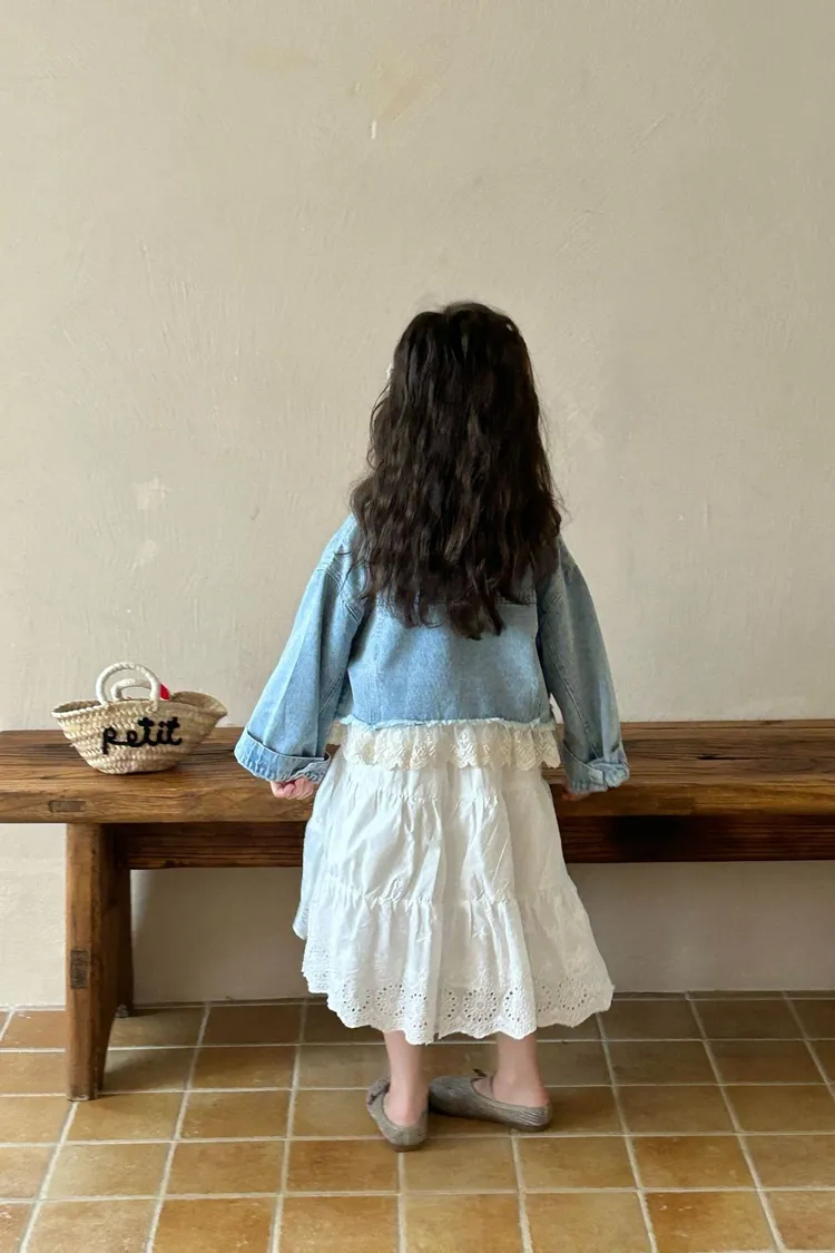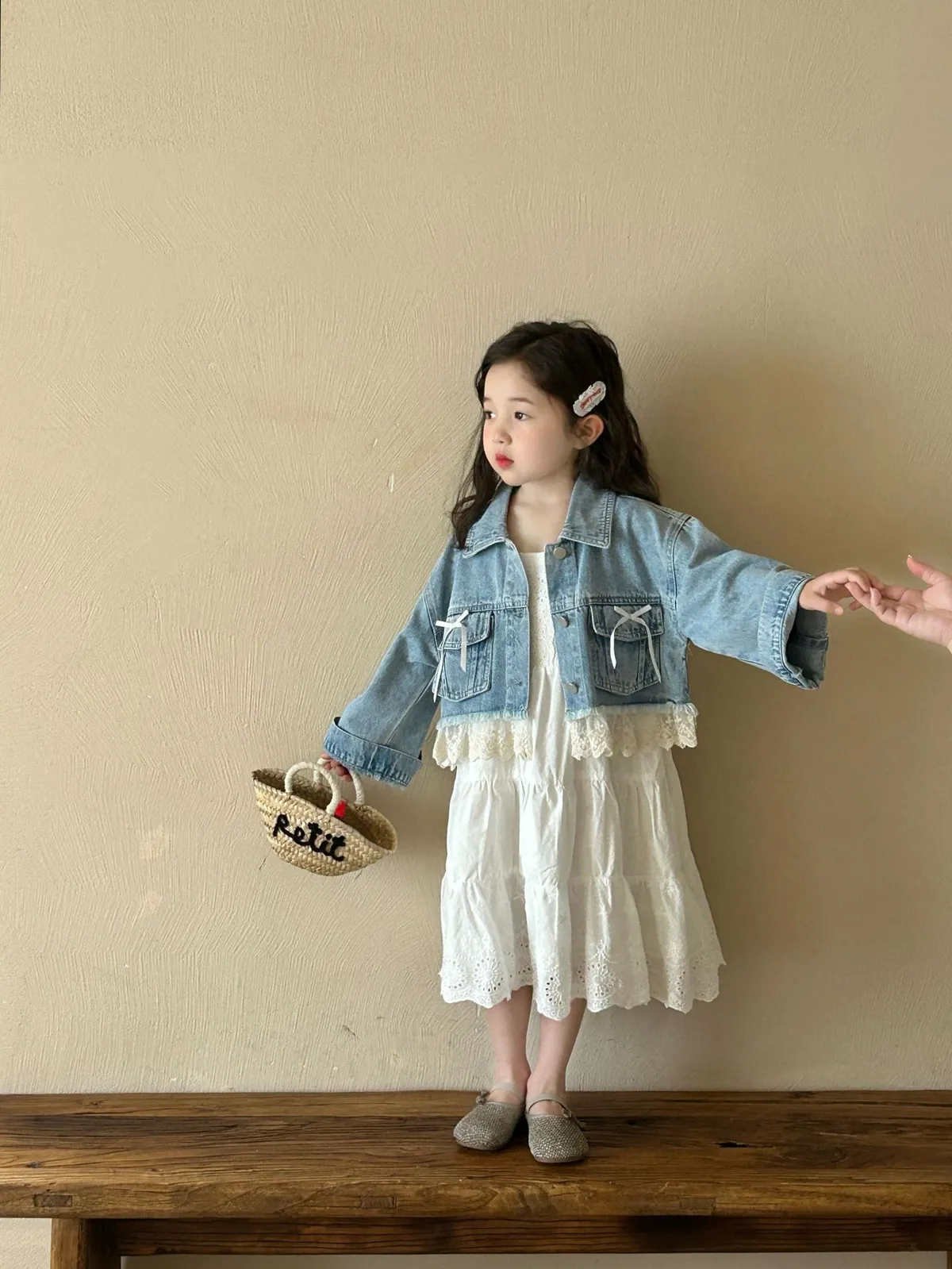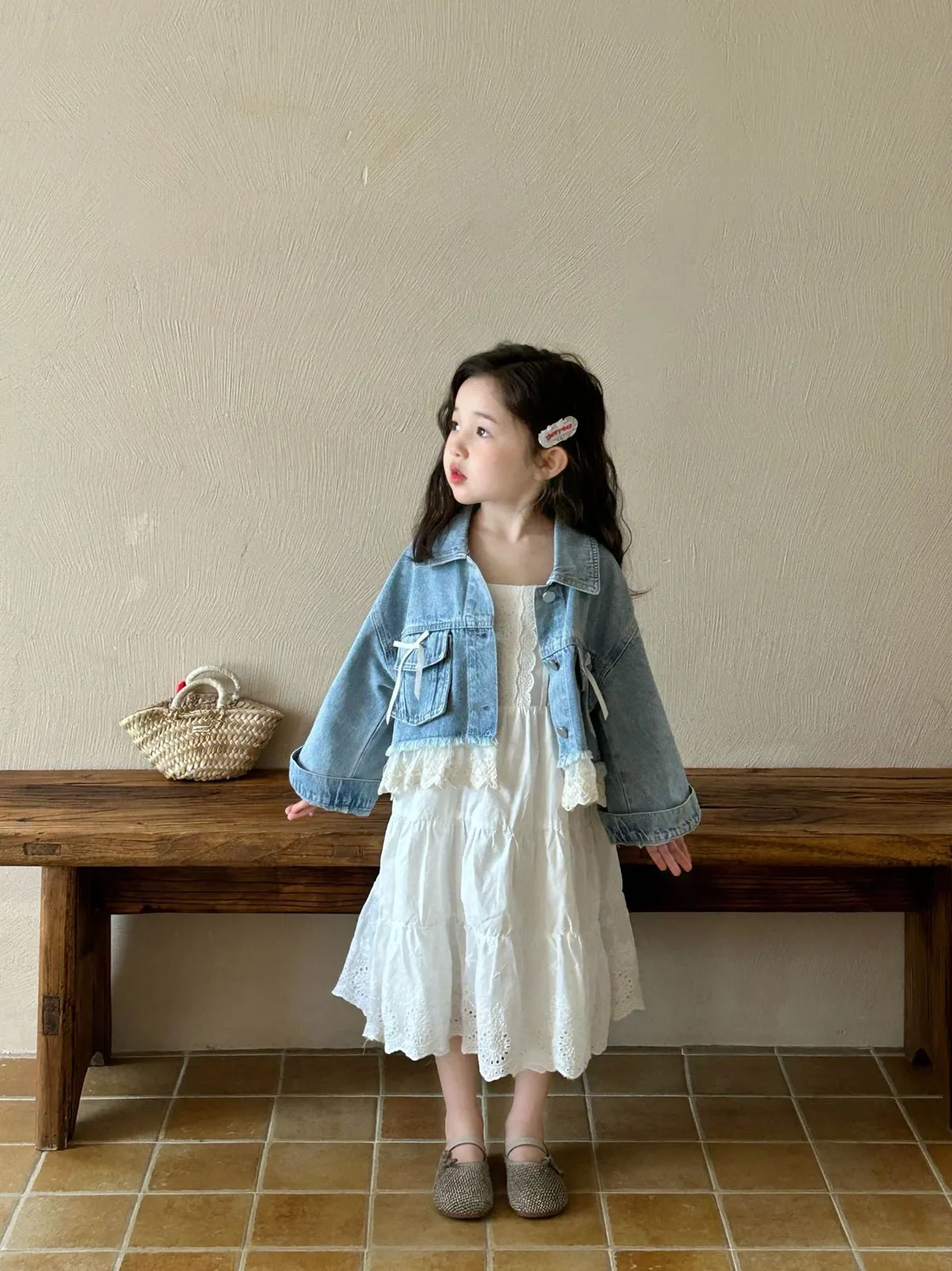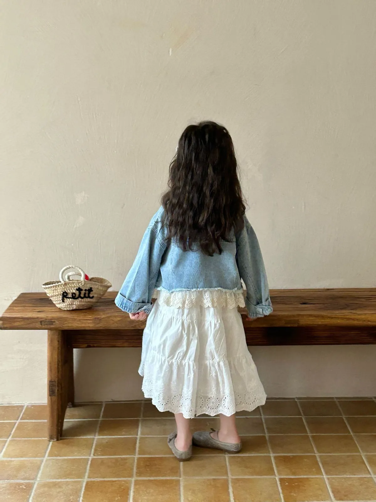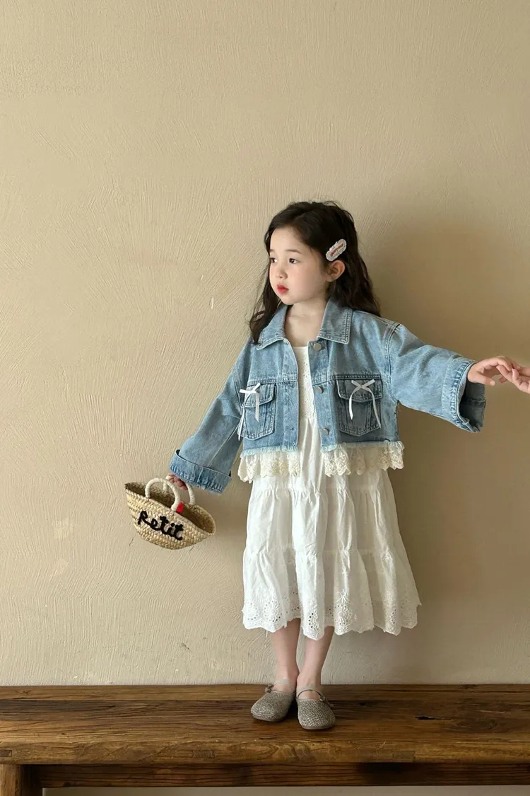 秋冬款超好看的套裝~牛仔外套下擺還做蕾絲邊造型!!!➰