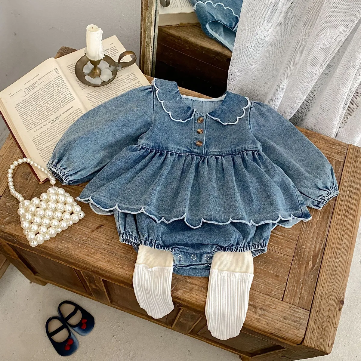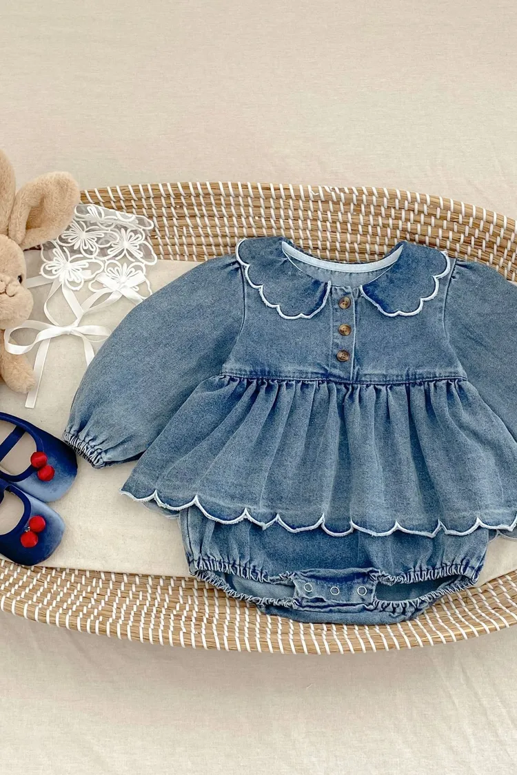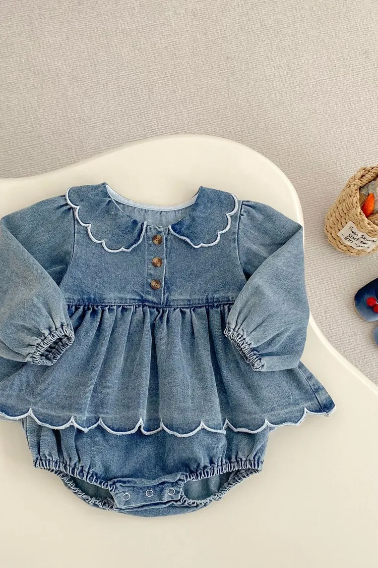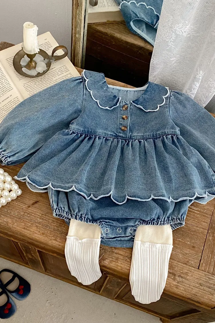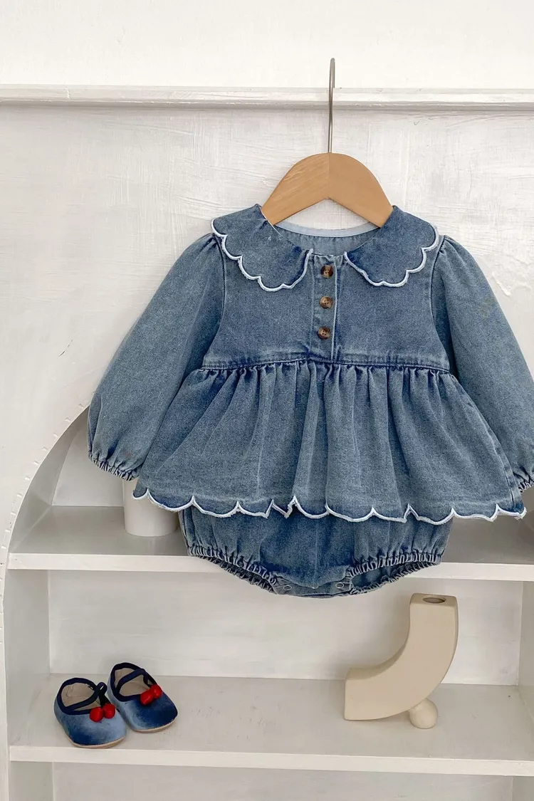 波浪花邊牛仔包屁