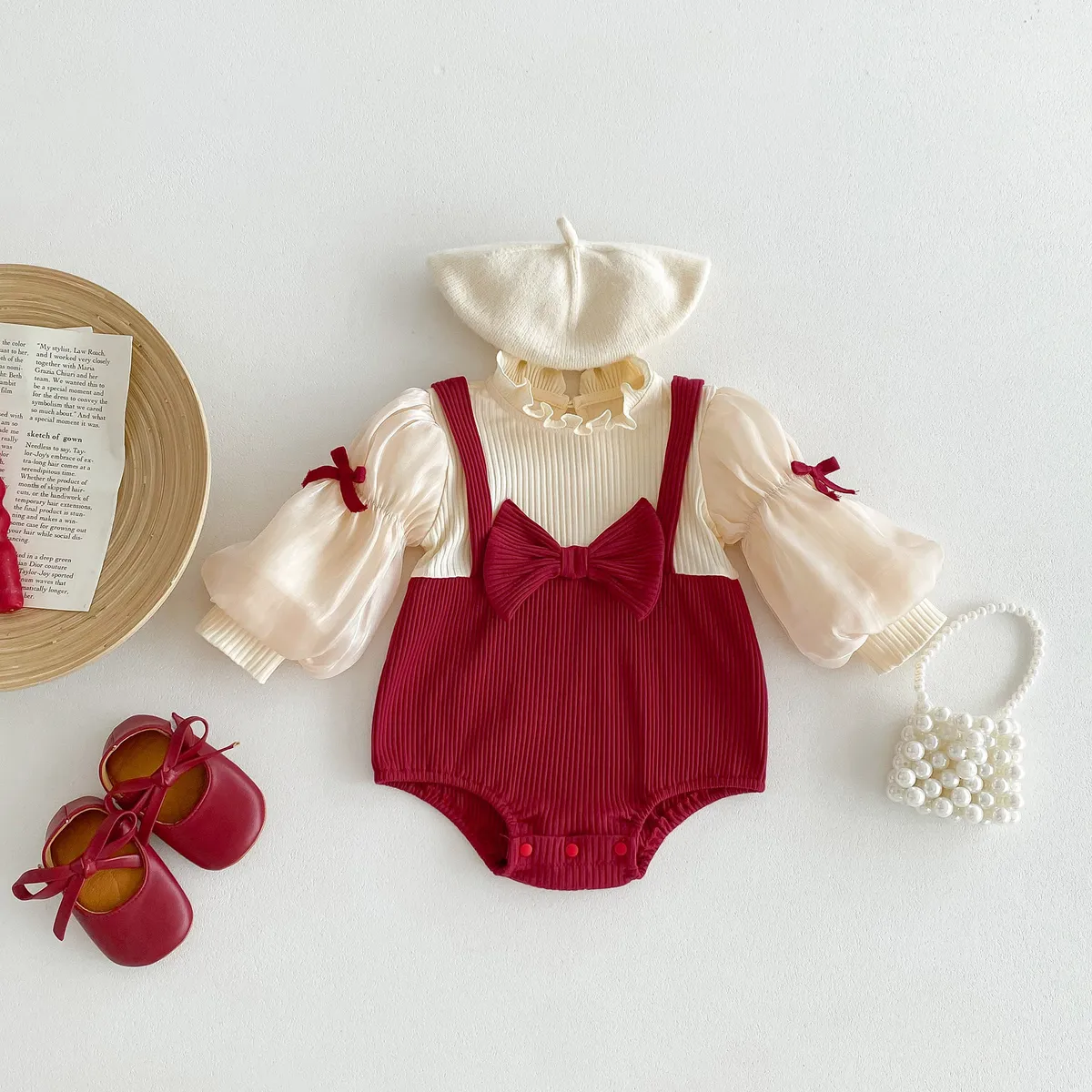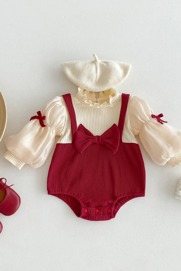 蝴蝶結假兩件包屁