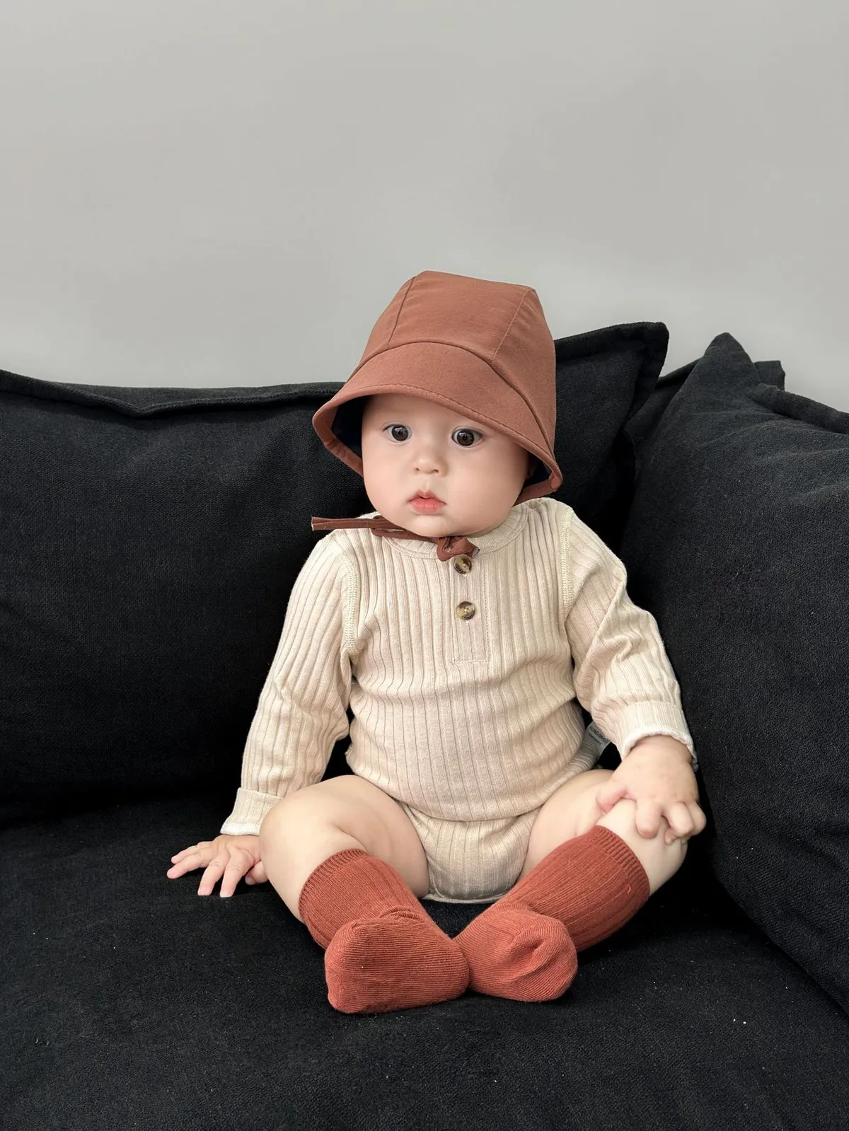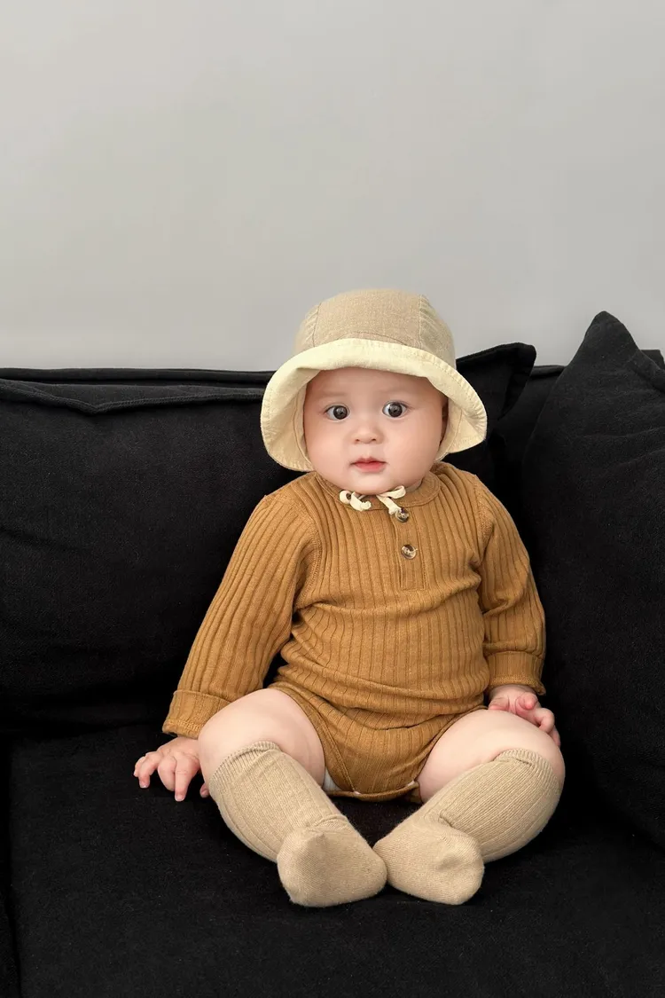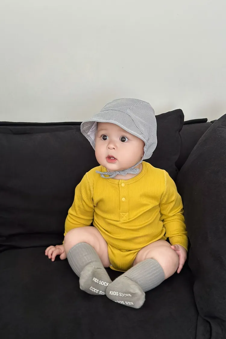 坑條素色包屁衣