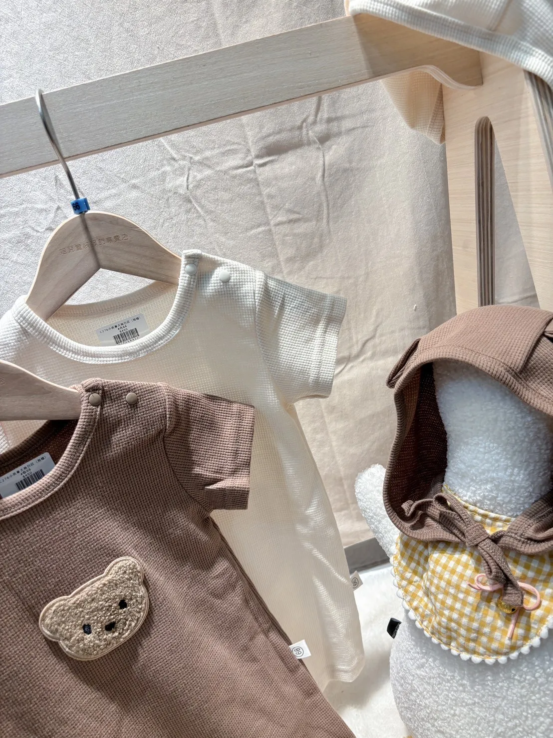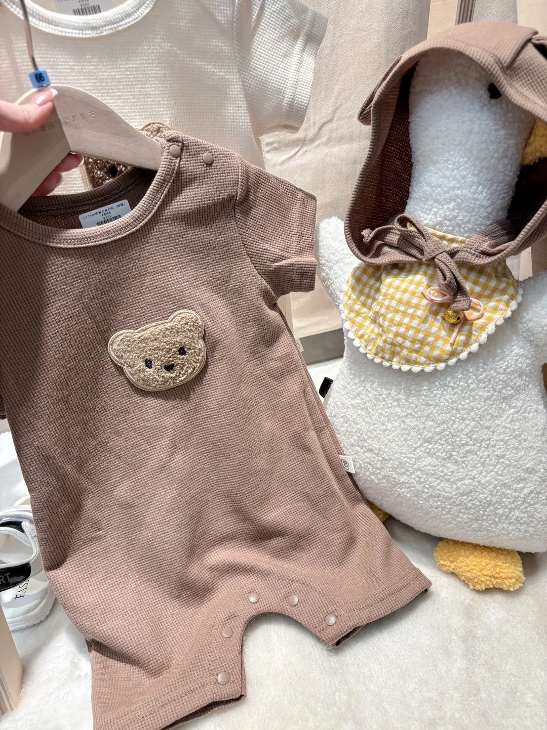 寶寶連身衣以柔軟親膚的坑條棉布製成