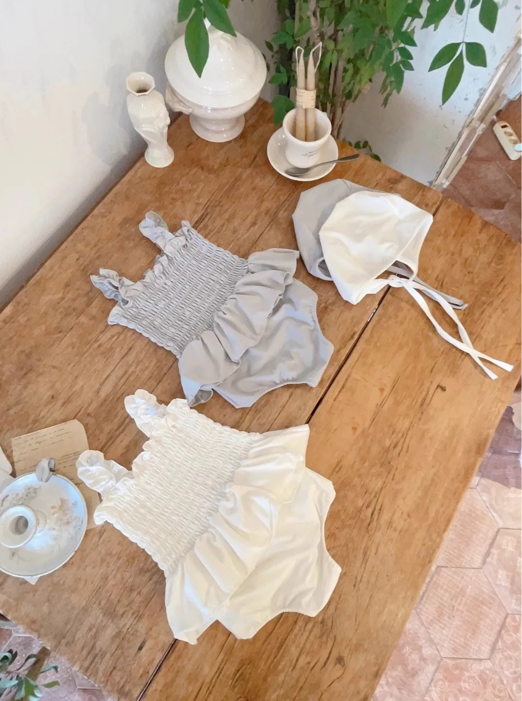 ins韓版女童寶寶吊帶純色比基尼泳衣分開式泳衣三件套,方便穿脫