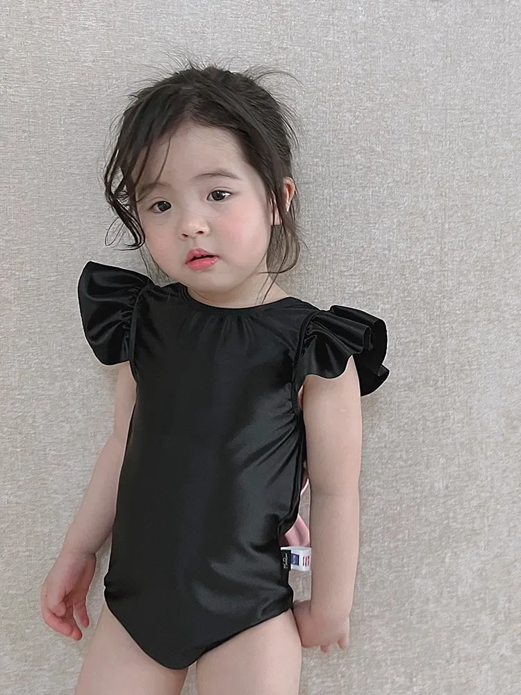黑色蝴蝶結連身泳衣(附帽)