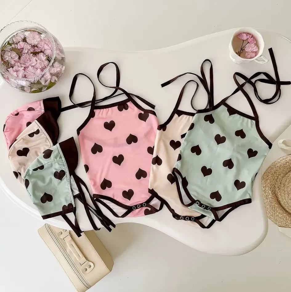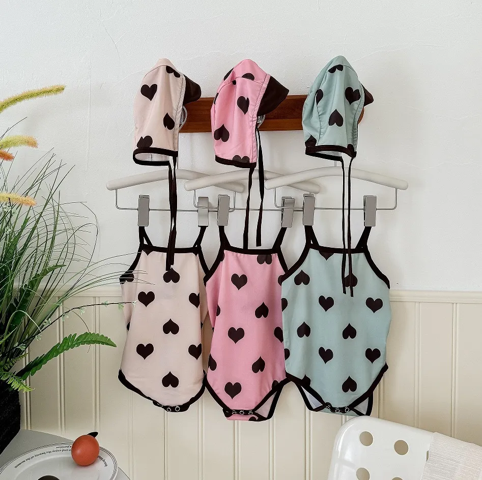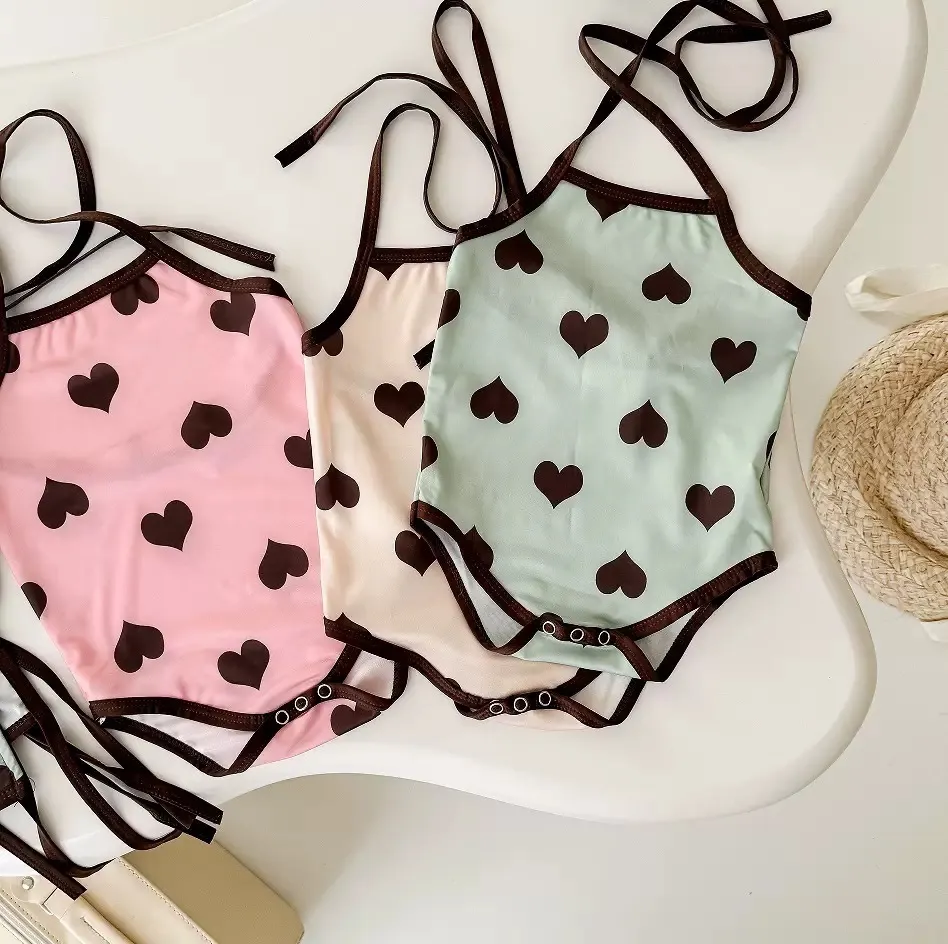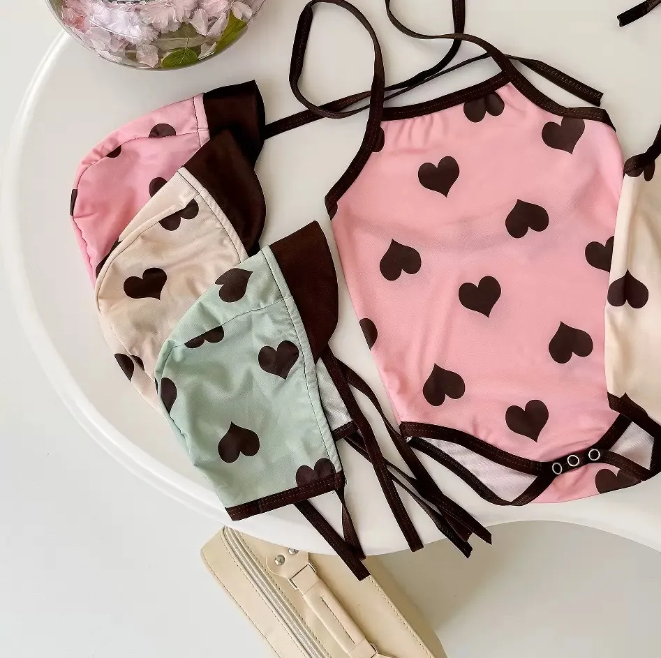 韓版夏季新款女寶泳衣可愛愛心吊帶連身三角泳衣❤️‍🔥
