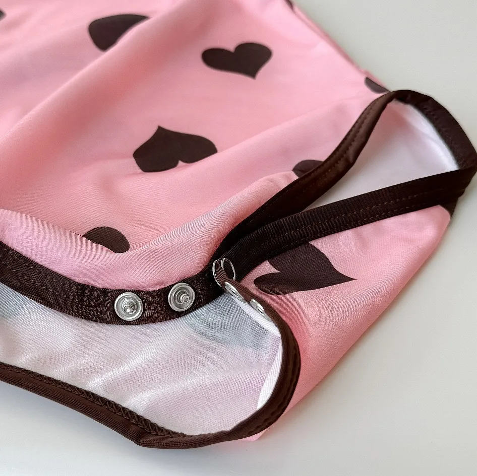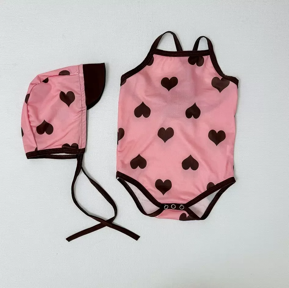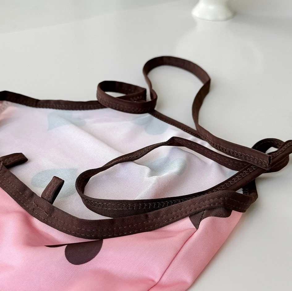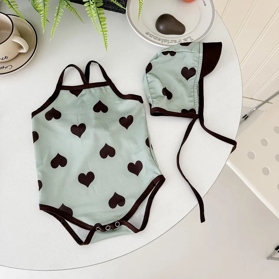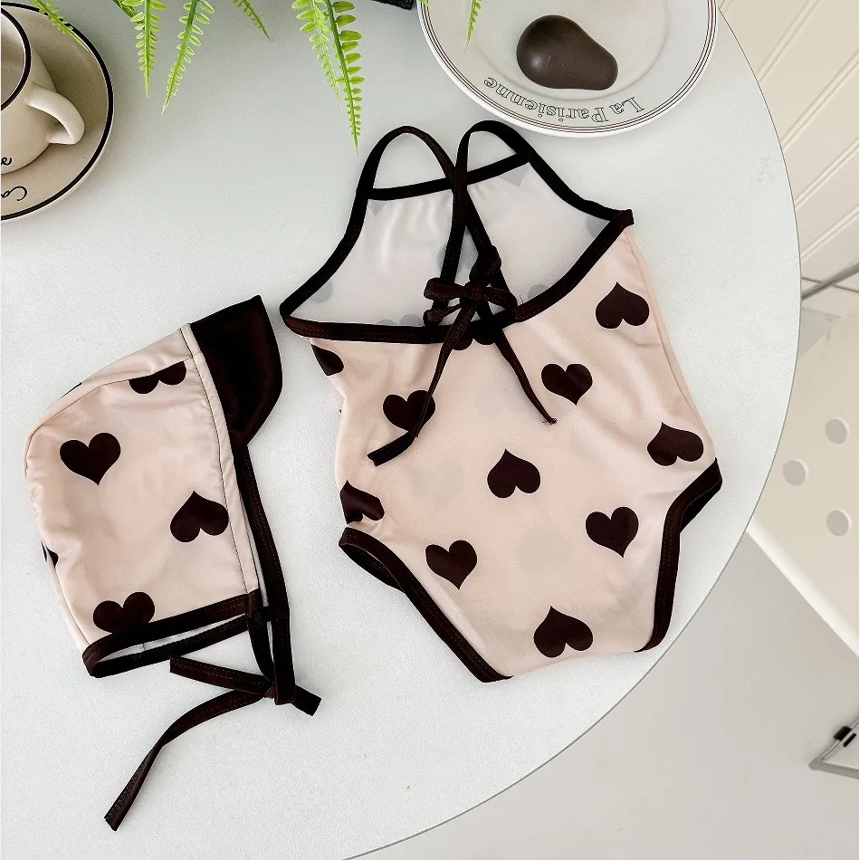 韓版夏季新款女寶泳衣可愛愛心吊帶連身三角泳衣❤️‍🔥